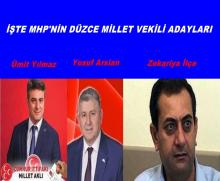 İşte MHP'nin Düzce Millet Vekili Adayları MHP'nin Düzce Millet vekili adayları belli oldu. 1.Sıra Ümit Yılmaz,2.Sıra Yusuf Arslan 3.Sıra Zekari