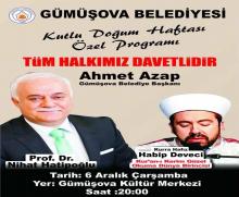 Gümüşova Belediyesi Kutlu Doğum Haftası nedeniyle bir program düzenliyor. Programa Ünlü ilahiyatçı Nihat Hatipoğlu konuşmacı ola