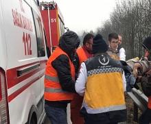 Düzce TEM otoyolu Gümüşova mevkiinde yolun yağışlı ve kaygan olması nedeniyle yoldan çıkan kamyonet şarampole yuvarlandı. Aracın iç