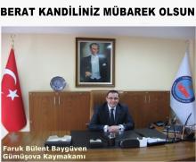 Gümüşova Kaymakamı Faruk Bülent Baygüven, Berat Kandili münasebetiyle bir kutlama mesajı yayınladı. Kaymakam Faruk Bü