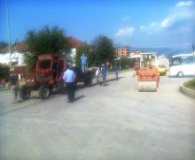 Gümüşova Belediyesi Fen İşleri Müdürlüğü ekiplerinin Merkez Mahallesi kilit parke yapımı ve yama ç