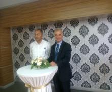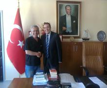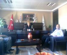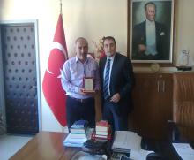 Cağdaş Gümüşova Gazetesi Genel yayın Yönetmeni Nevzat Keleş Gümüşova Kaymakamı Faruk Bülent Baygüven’i makamında